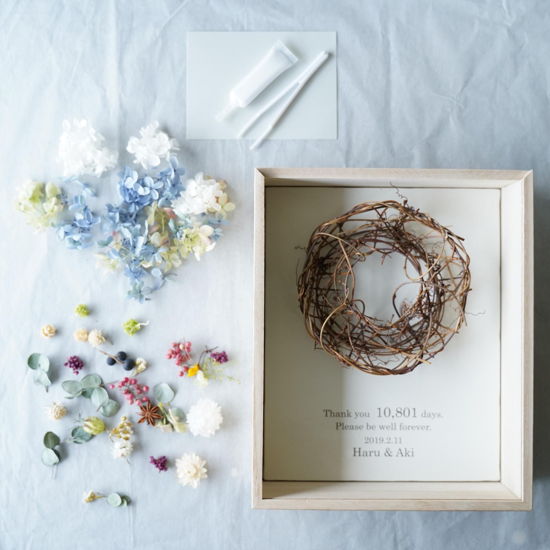 リースキット・木製BOX付き(ブルー系)壁掛けフック付き